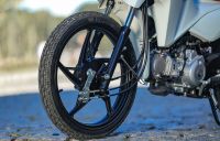 Outra importante inovação da Pop 110i ES 2027 é a adoção de rodas de liga-leve equipadas com pneus tubeless (sem câmara), o que contribui para uma maior segurança e facilidade de reparação em caso de perda de pressão ocasionada por furo. A medida do pneu dianteiro agora é de 70/90-17 contra os 60/100-17 da versão anterior. O pneu traseiro permanece com a medida 80/100-14.