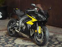 Disponível na cor preta, a Daytona 660 traz uma evolução significativa do exclusivo motor triplo de 660cc da Triumph, entregando 95PS de potência e 69 Nm de torque. O modelo oferece uma condução suave, linear e responsiva, combinando torque em baixas e médias rotações com potência de ponta. Além de registrar 17% mais potência e 9% mais torque do que a Trident, a Daytona 660 apresenta ainda um sistema de escape atualizado, proporcionando uma trilha sonora esportiva inconfundível.