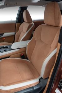 Refletindo o propósito sustentável da motorização elétrica, o revestimento em Ultra Suede é produzido com 30% de material de base vegetal e estreia a aplicação de texturas gráficas feitas a laser, uma técnica que aumenta a sensação de luxo na cabine. Também há iluminação indireta com 64 cores personalizáveis e LEDs posicionados para criar camadas sobrepostas de luz e sombra, garantindo um efeito dinâmico com padrões projetados sobre as portas.